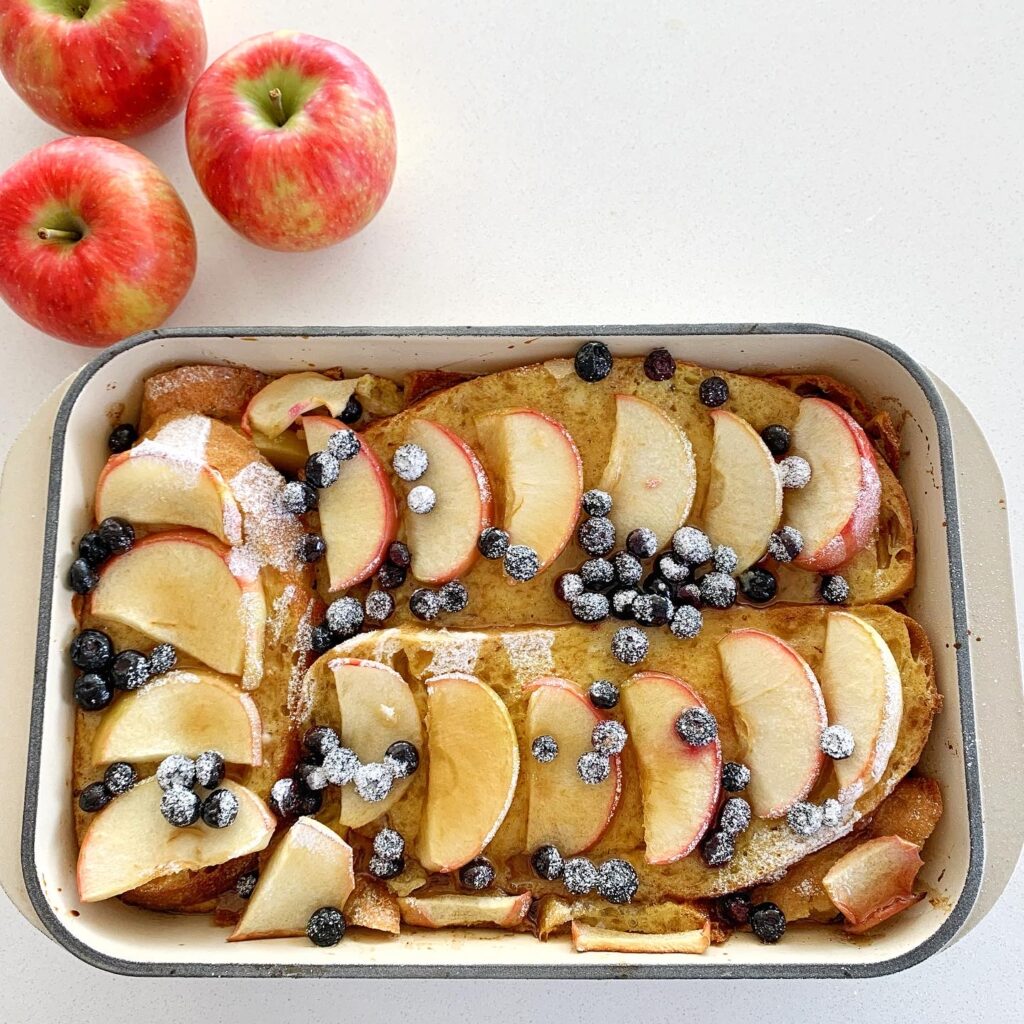 It’s that time of the year when apples are ready for the picking and we picked 20lbs of Honeycrisp apples! So why not enjoy the fruits of our labour with an Apple Berry French Toast Bake! Sounds delicious? Because it is! Let’s get cookin’!