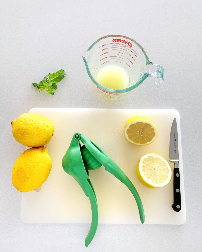 - Squeeze the juice out of 6-7 lemons. You want at least 1 cup of lemon juice.