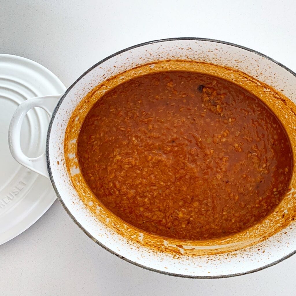 - Drain the lentils and add them to the Dutch oven along with 2 cups of water.